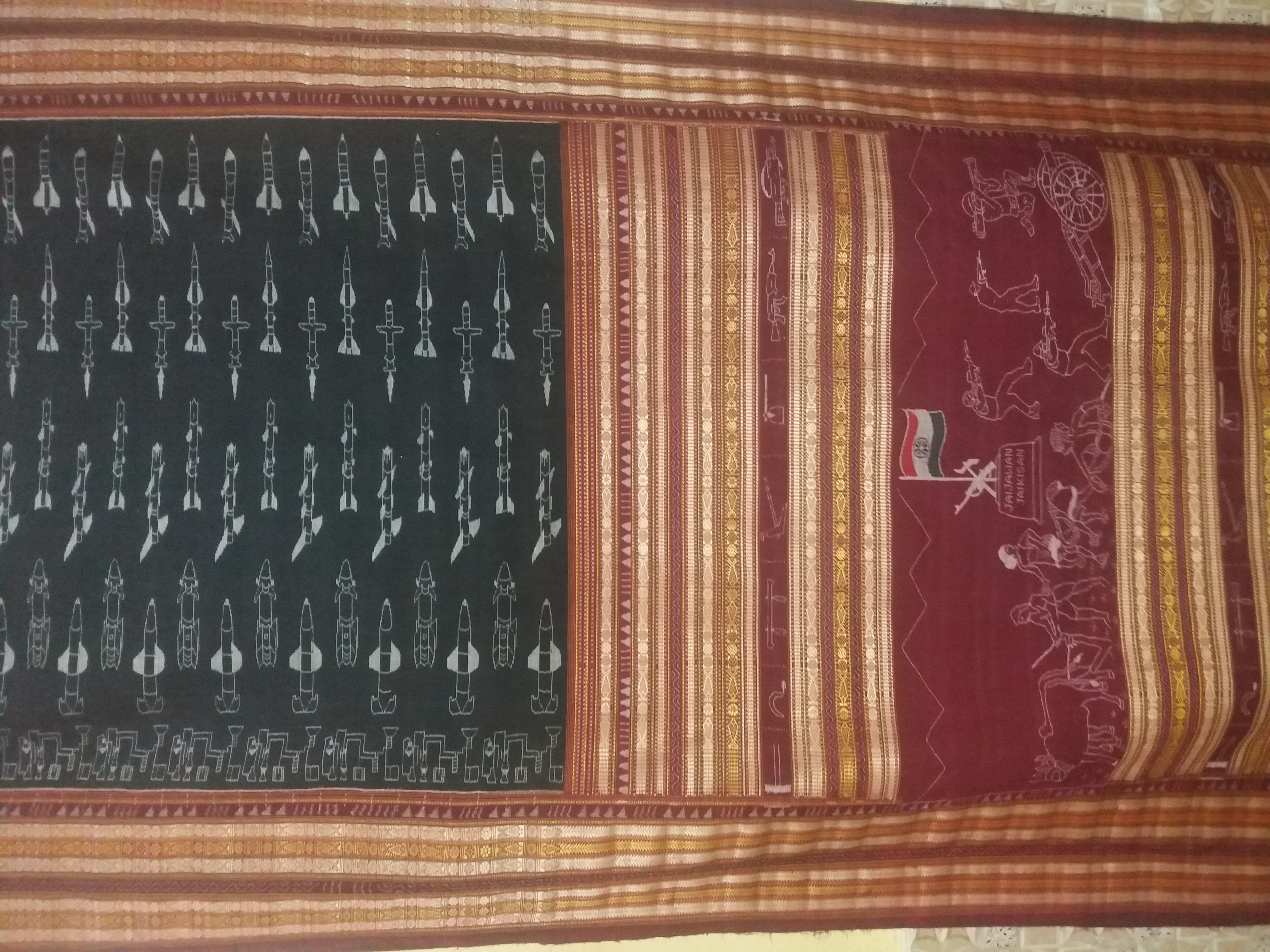 This saree is based on the Indian soldier, farmer, and scientist.