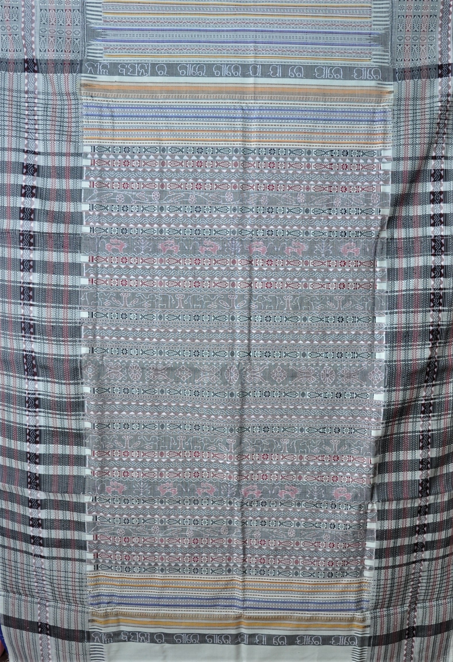 This saree is based on the bhulia song "Nilabasanti ra gare gare ja ja re jare jare", when the weavers are making the saree, they sing this song for their self entertainment. For the designing and weaving of the saree Ms. Debaki Meher was awarded Santh Kabir Award in 2017.